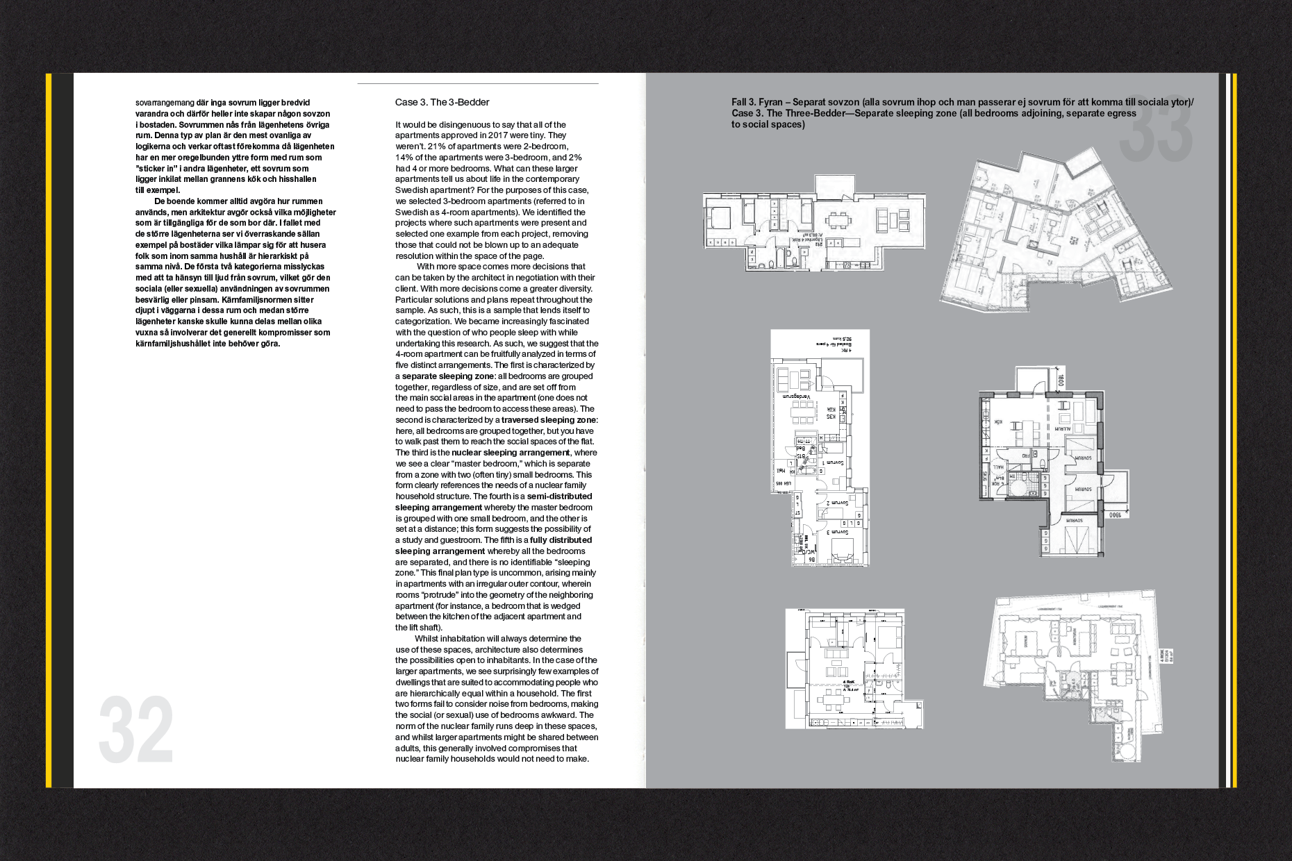 What (the hell) is contemporary Swedish residential architecture doing, amidst the foggy conditions of a late-capitalist, twenty-first century Welfare State, with a view to its construction booms and housing shortages? What are the demands that this architecture answers to, and what problems of its own might it be wrestling with? What forms of life does it dream of accommodating and which does it normalize, naturalize, or exclude?