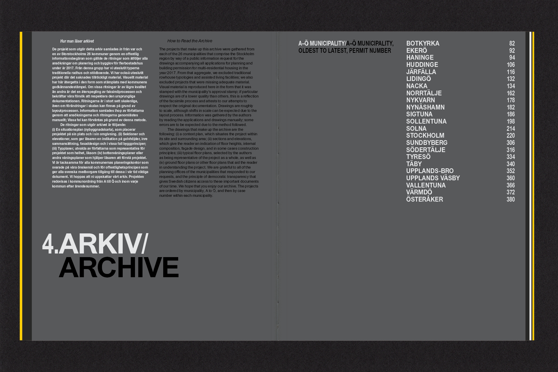 Compiled and published by Secretary Office for Architecture, 2021, single spot colour softcover with screenprinted vinyl jacket, one colour black only, 24 × 30 cm, 400pp, ed: 500 (1st ed) reprint: 250 (2nd ed, 2022) Language: Swedish and English
