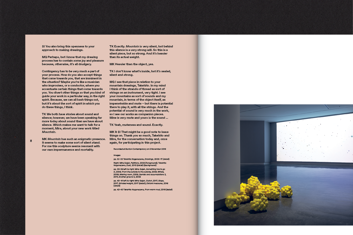 Continuing series of publications documenting Melbourne art gallery Buxton Contemporary’s program of Australian and international art exhibitions. Installation photography sits alongside curator and commissioned texts to give a comprehensive exhibition overview. The publications format and production is consistent allowing the page design to adapt and respond to the content.